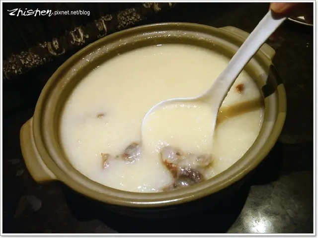 Ω綿密滑口的鴨粥有著溫和鴨骨香氣,入口即化,只見大家埋頭苦幹,默默的享用後來也是吃到快見鍋底了。
