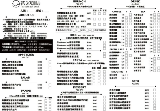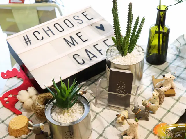中山國中在​​​捷運站​附近的這間『初米咖啡』這算是挺有名氣,初米聽起來很像台語的促咪(趣味),也像英文的choose me。雖然是下大雨的周末午後到訪但店內依然生意很好,隔壁桌還坐了兩位香港來的女孩兒。假日9點就開門了,想吃早午餐或是下午茶、正餐都很方便。餐點種類選擇不少,外型也很有特色,喜歡拍照的女孩兒們應該會喜歡的!