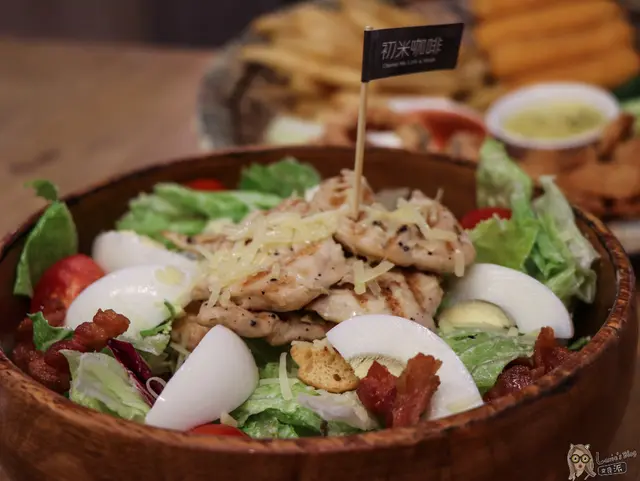 沙拉裡面還有培根,配上起司與凱薩醬,吃起來鹹度比較高一些