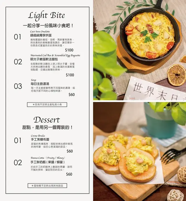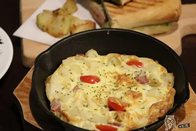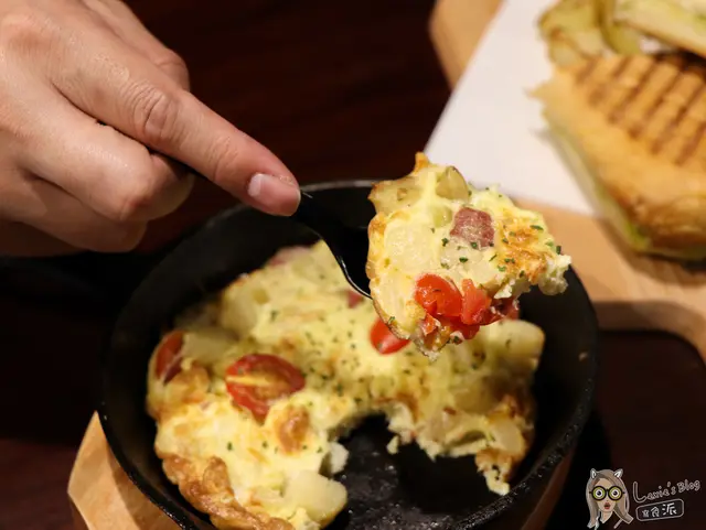 烘蛋上桌就聞到蛋的焦香味,裡面有番茄、培根、馬鈴薯,口味輕盈,男女老少都適合的小前菜