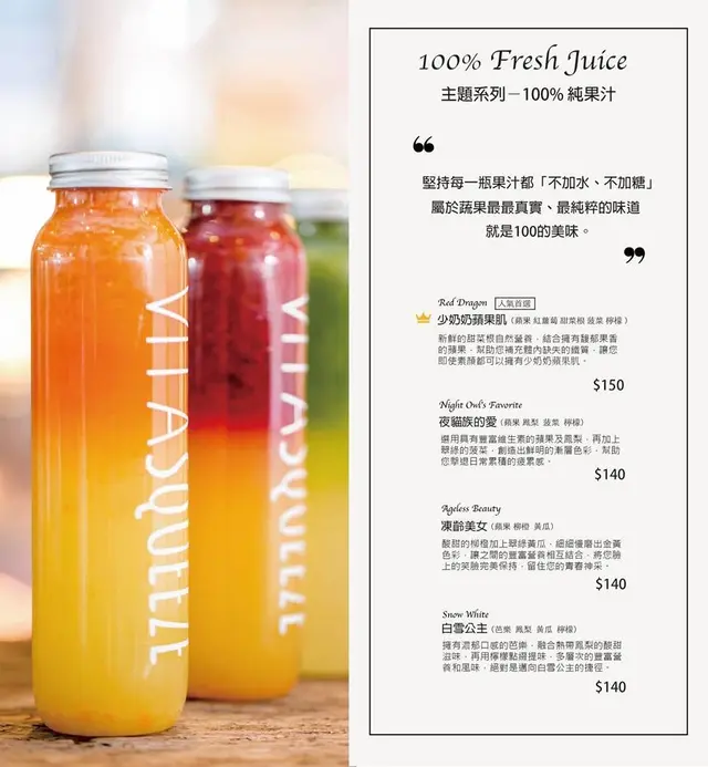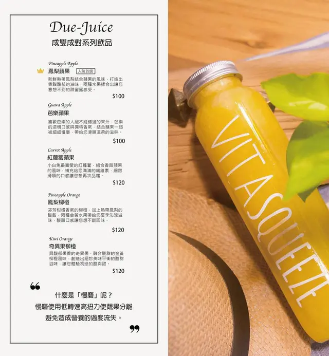 『Vita Squeeze微時光』的取名很可愛,其實是Vitamin(維他命)+Squeeze擠壓 綜合而來的,簡單明確,就是要讓外食族也可以輕鬆吃得健康