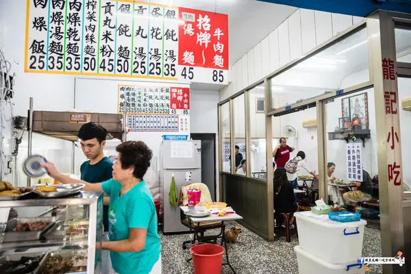 【龍記小吃】用餐環境很簡單與寬敞,騎樓也有用餐區,店內餐點主打麵食類,有牛肉麵、牛肉湯麵、肉燥湯(乾)麵、榨菜肉絲麵、貢丸米粉與餛飩麵,湯品方面有貢丸湯、蛋花湯與餛飩湯,當然還有目光焦點銅板價位的肉燥飯,所以本次點選餐點為牛肉麵、麻醬麵、榨菜肉絲麵與肉燥飯。