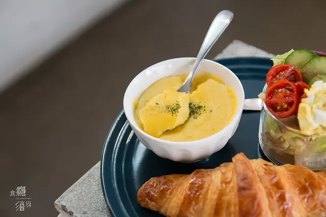 無論是單吃或是沾著可頌都不錯,不過可頌的口感偏軟,再酥鬆一些我會更喜歡,而蛋沙拉很清爽,適合在喝完濃湯之後品嚐。
