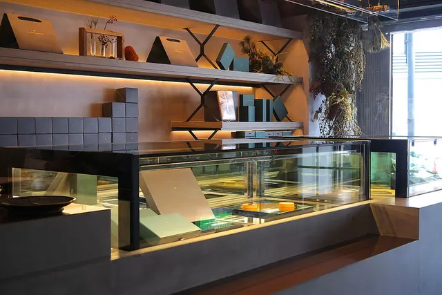 ▲一進門,便能瞧見長形的透明甜點櫥窗