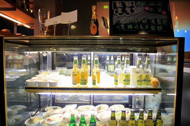 ▲吧台冰櫃裏有沙拉和汽泡飲料
