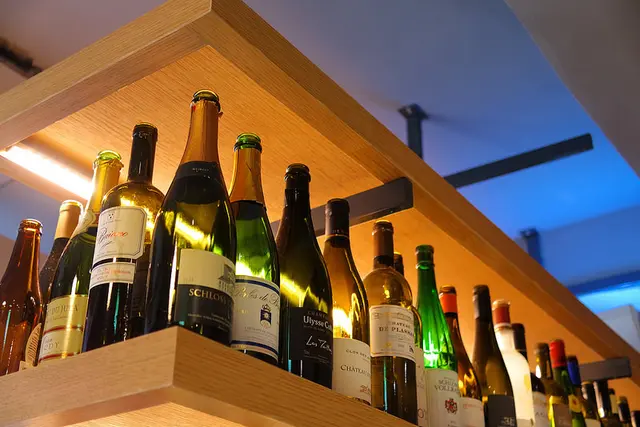 ▲架上擺放著各式各樣的酒瓶,好有小酒館的感覺!