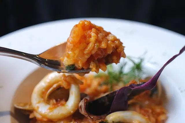 番茄的香味與海鮮搭配很和諧,燉飯也很入味