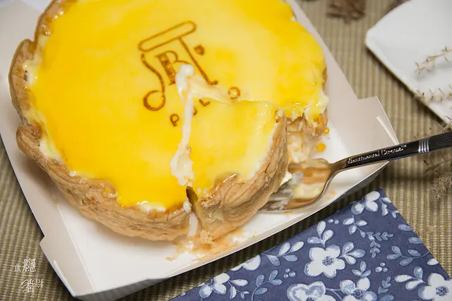 用刀子切下,切到塔皮時會發出喀嚓喀嚓的聲響,你就知道塔皮有多酥脆了!