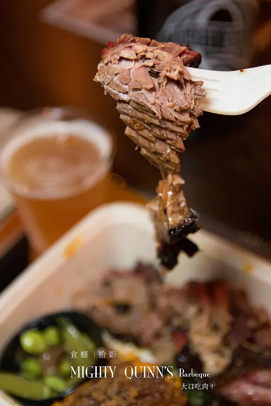 牛胸肉肉質較軟,且帶有少許油脂,吃起來較嫩口些 ;豬肋排相當扎實,口味偏鹹,但燻烤的香氣我蠻喜歡的!