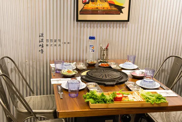 個人覺得四人桌的座位空間有些小,光是擺放烤盤、餐具及小菜,就已經佔據大半空間,