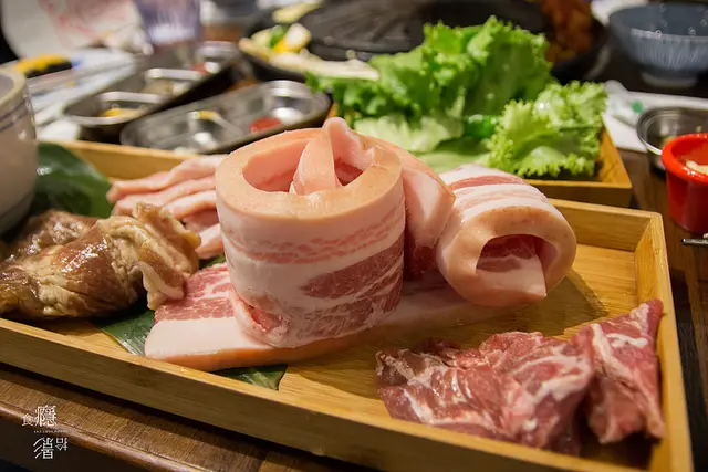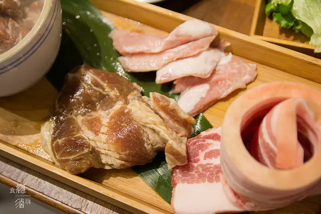 豬肉拼盤中的肉品較有印象的為厚切豬五花、護心肉,