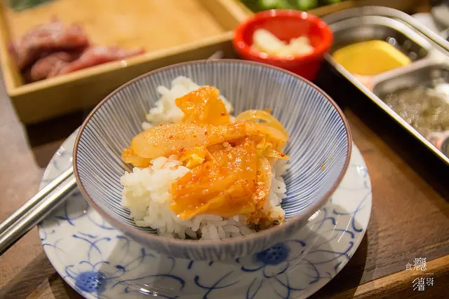 在豬肉拼盤中也附有一份豬肉泡菜鍋,單吃覺得稍鹹,於是我們又另外加點白飯做搭配(白飯 30元一碗)
