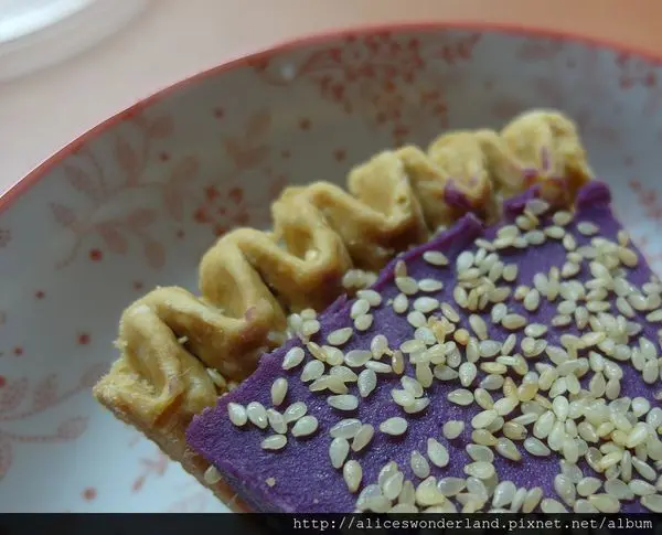 下層的紫色地瓜尼配上滿滿的白芝麻~