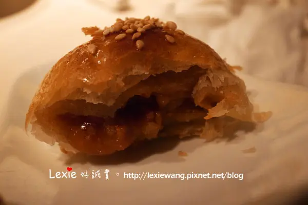 非常香酥的千層外皮 裡面的肉餡甜鹹摻半 熱熱的還很濕潤