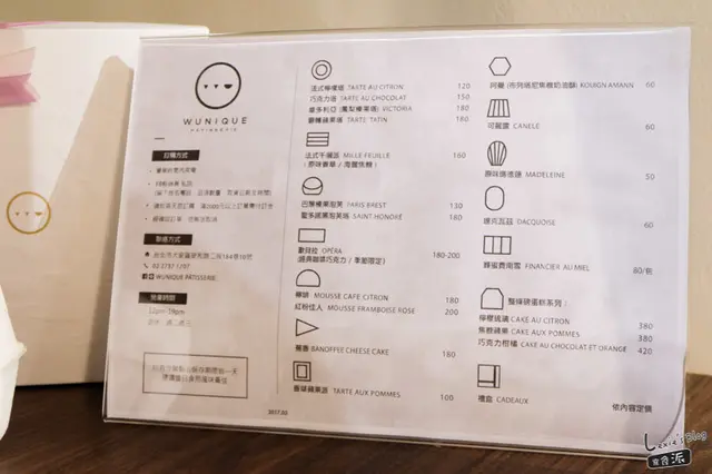 我愛法式甜點的精緻、優雅、細膩與它的風情萬種,讓人沉醉。但不知道為什麼這2年對於甜點的狂熱衰退了很多,大概就是老了吧!想到之前頂著艷陽在 CJSJ門口排隊1小時等開門現在好像辦不到了。久聞『無二法式甜點』大名,現在才來報到,嗚嗚以前真得很自豪自己的甜點味覺現在大步倒退中XDDD。『無二法式甜點』整體來說甜度較低, ㄧ般人都可以接受,精緻美味,是值得推薦的法式甜點。