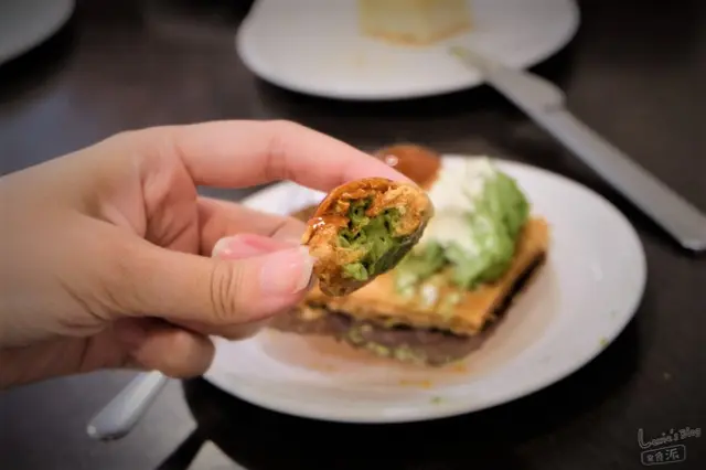 泡芙裡面咬開還有抹茶餡,焦糖很厚很脆,也算是層次非常豐富的甜點