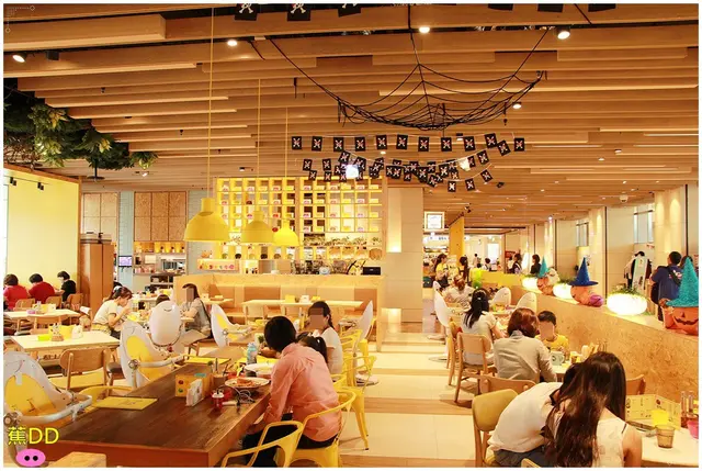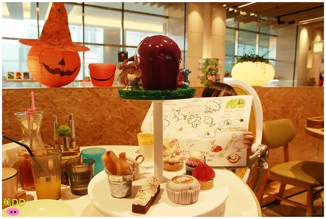 『象園咖啡-南港店』與內湖店較不同,空間為室內型的開放空間,裝潢一樣走溫馨童趣的風格,隨處可見鎮店標誌的可愛大象,剛好店內這個月迎接即將到來的Halloween,所以店內也配合著裝飾Halloween風,讓路過逛街的人,也被這些繽紛的裝飾所吸引。