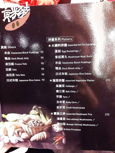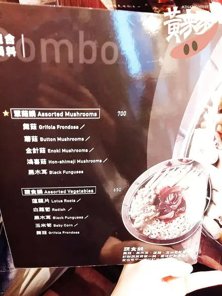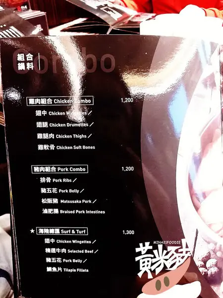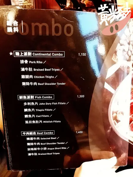 組合鍋料則有雞肉組合、豬肉組合、海陸總匯、路上派對、鮮魚派對、