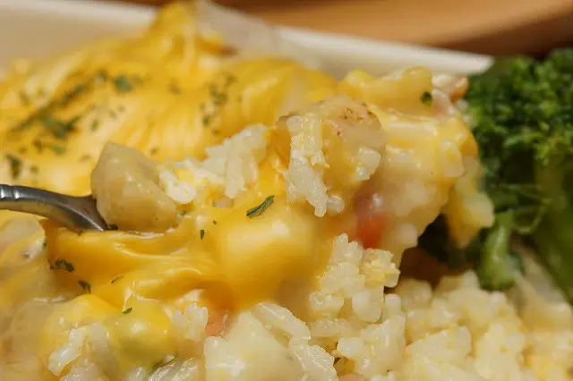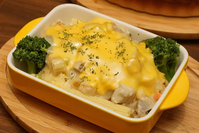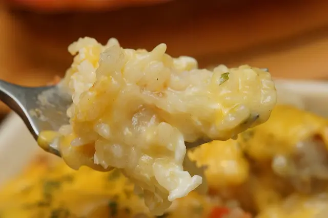 光滑鵝黃色的奶油醬 滿滿的鋪在雞皇炒飯上