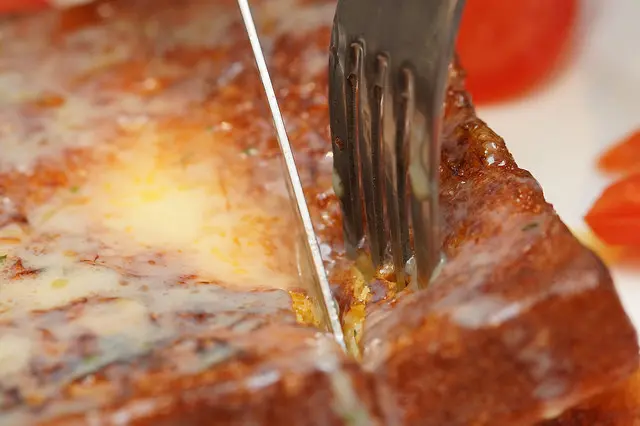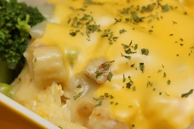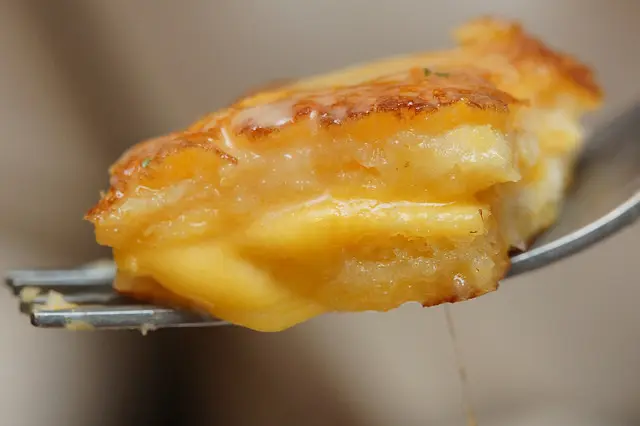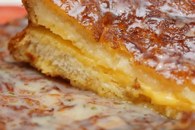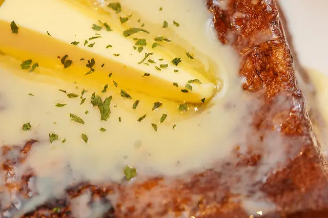 隨著溫度奶油及煉乳 緩慢的沿著吐司邊流下來