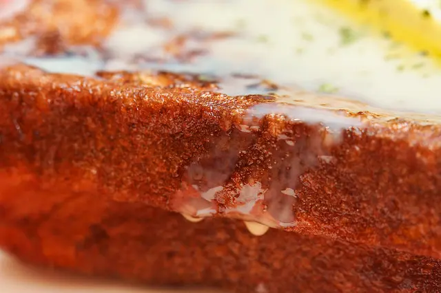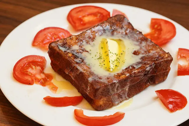 顏色有如麵包超人的色澤 油煎至外皮脆口的土司