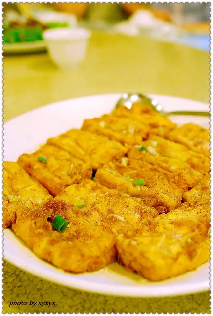 裹了薄薄一層粉下去油炸,但是裡面還是保持豆腐的嫩度