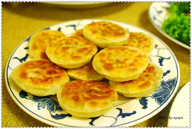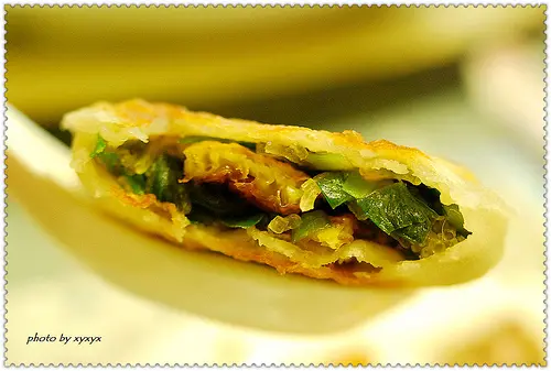 韭菜盒子個個皮薄而酥脆,裡面的餡是填得飽飽的韭菜、豆皮、粉絲