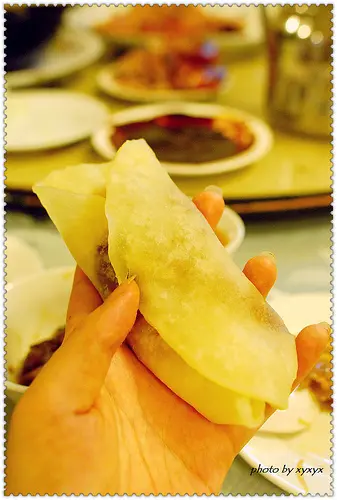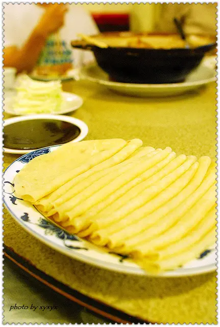 荷葉餅有些厚度,在微溫之下能夠保有Q勁的口感和香香的麵粉味,而厚度也可以防止烤鴨餅吃到最後破掉而影響口感