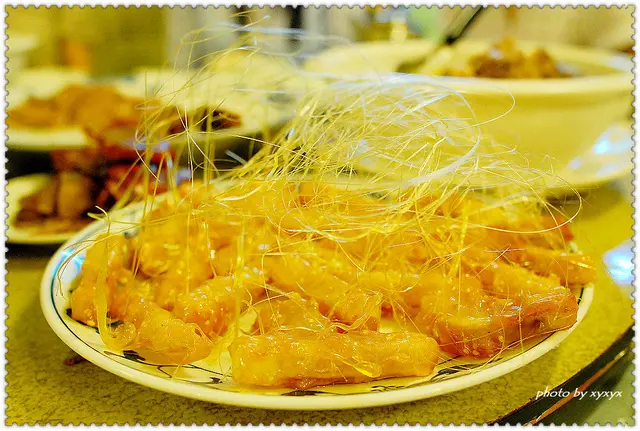 拔絲地瓜上桌....真的像一個美麗的藝術品一樣~