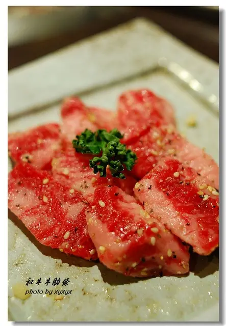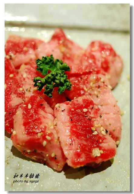 吃起來肉質比較Q軟,和上次吃到的澳洲和牛霜降牛五花薄而硬的口感差異甚大。