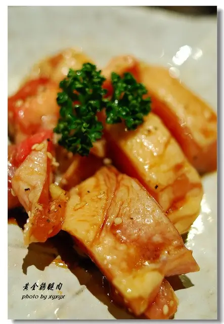 吃了一塊的結果,它的口感不像乾杯BAR和大腕的雞三角那樣脆,比較多筋的感覺。