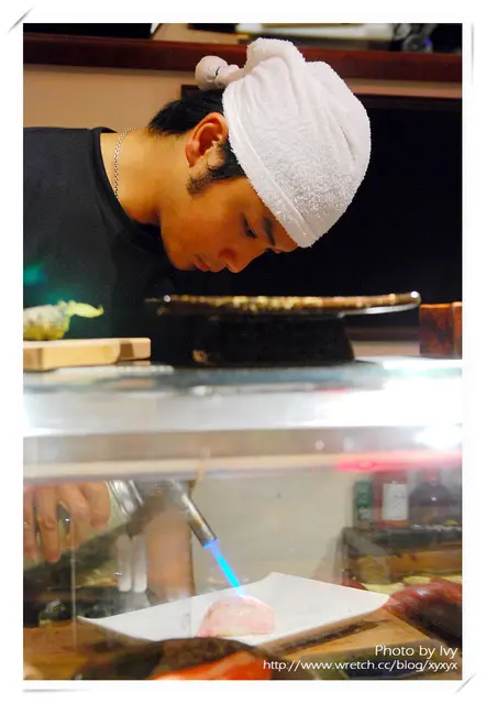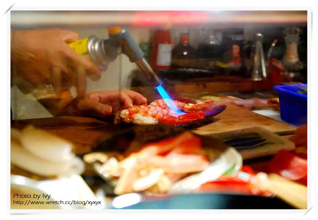 接著,又看到吳迪拿著噴槍,在微炙下一貫的魚料