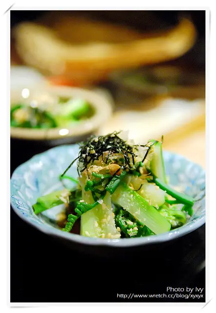 鮪魚赤身佐芽蔥、自製山椒醬油