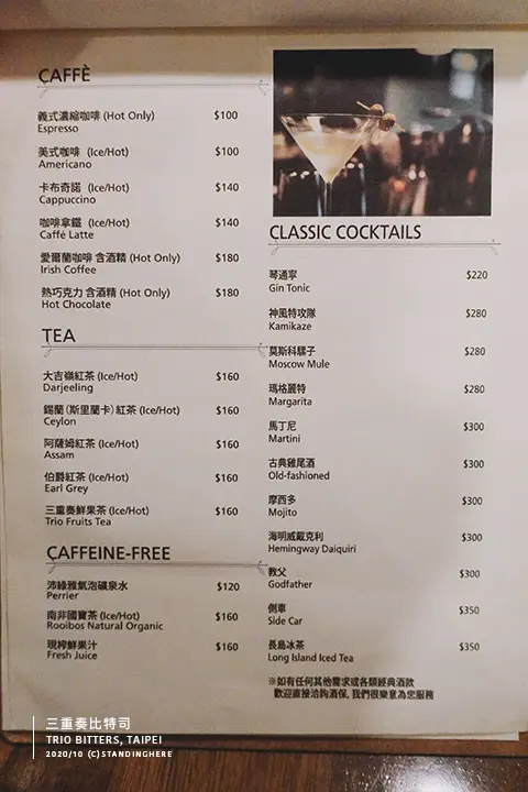 這裡有一般經典調酒,也有三重奏系列的特調,