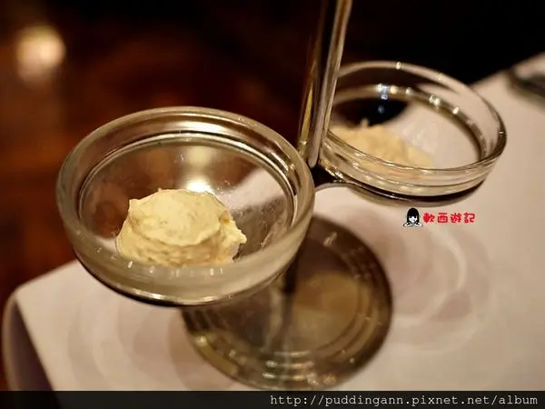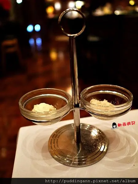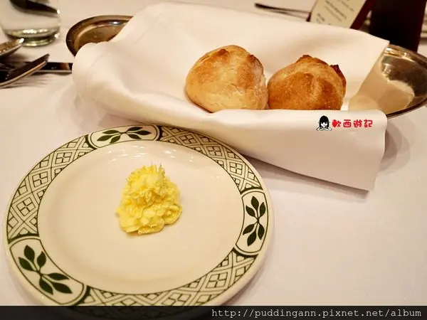 套餐的餐前麵包~麵包外皮很脆哈哈哈,口感比較偏硬,加上滑順奶油熱騰騰吃好吃