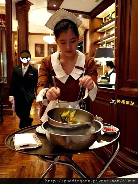 Lawry's最特別的就是這特製百萬銀色餐車桌邊服務,可愛服務生說,