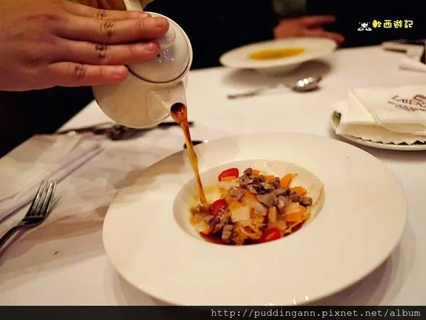 美麗服務生會推來餐車,一面旋轉一面將沙拉醬高舉倒入碗中,動作高雅流暢太快了我來不及拍照啦T^T