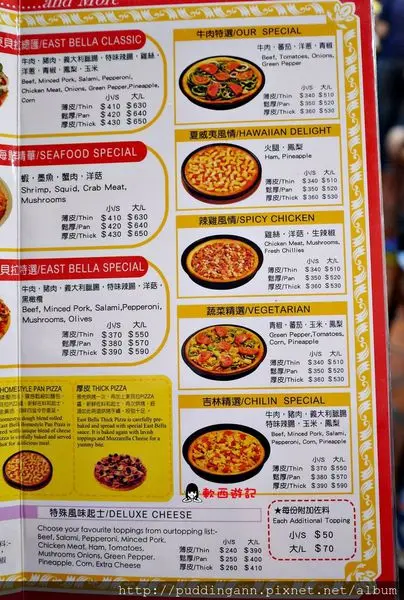 蘇阿姨的披薩種類很多,每種披薩又可以選大小,還有三種餅皮可以選