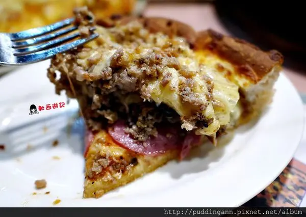 裡面有滿滿的牛肉、豬肉、義大利臘腸、特味臘腸、洋菇與黑橄欖