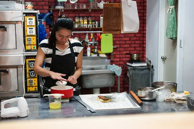 可以看到老闆細心地做甜點(本胖只愛吃,不會做啊~~)