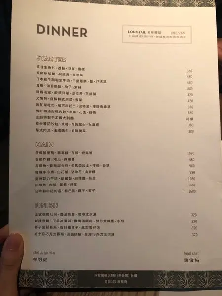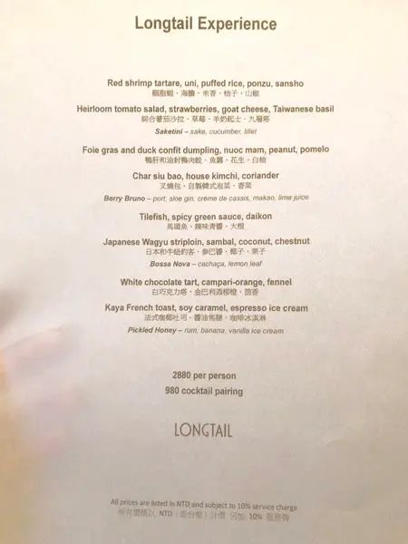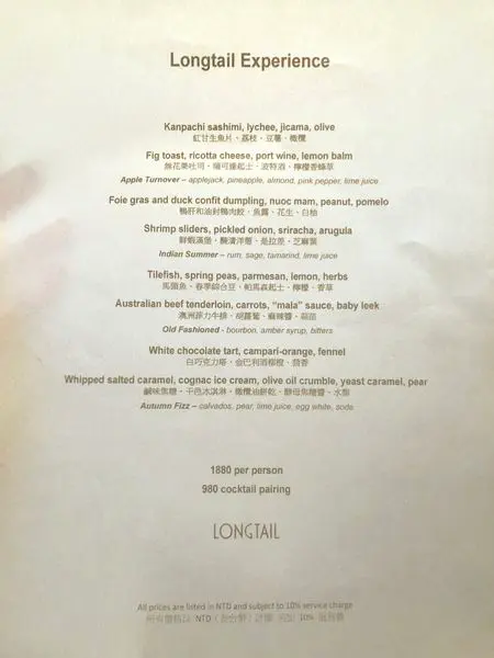 在台北除了Longtail之外還有另兩間餐廳,不過Longtail是我們第一次品嚐他的料理