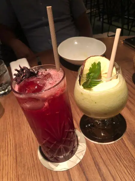 老公點的是右邊綠色那一杯,青蘋果、鳳梨,還加了一點杏仁和香菜,真的有杏仁和香菜的味道!很特別好喝