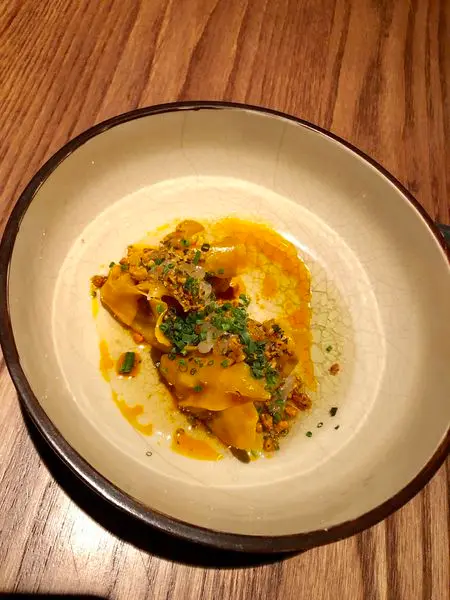 超好吃!餃子的麵皮很Q彈,裡面的鴨肝是一整塊的,非常軟嫩、入口即化...,搭配的sauce 味道甜甜的,又有類似花生的脆脆堅果...
