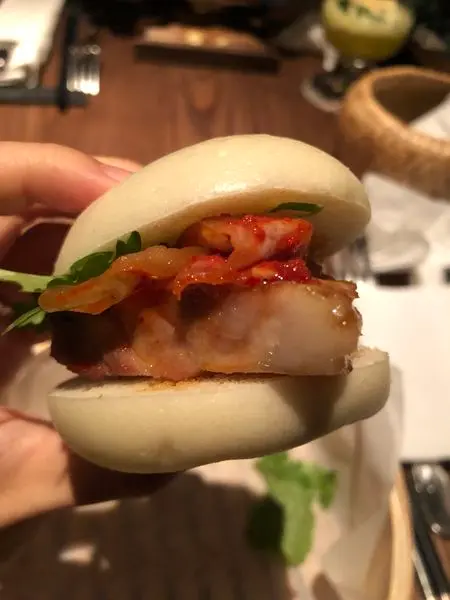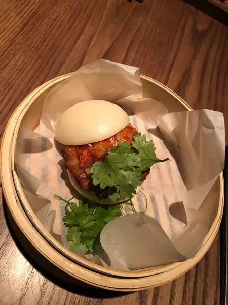 包子皮Q軟、叉燒油嫩好吃,搭配辣度適中的泡菜、提味的香菜,做成掛包的概念,好吃!