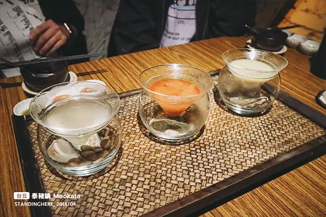 一開始服務生會端上這盤,有三種湯底讓客人試喝,