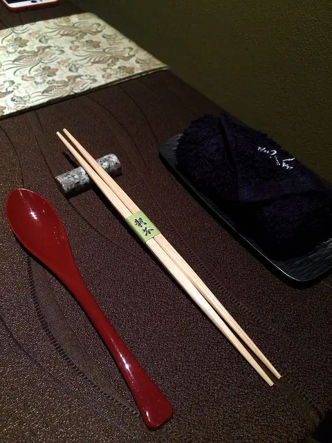 筷子很特別,兩頭都是細的,據說是為了讓你夾生食和熟食分開唷!