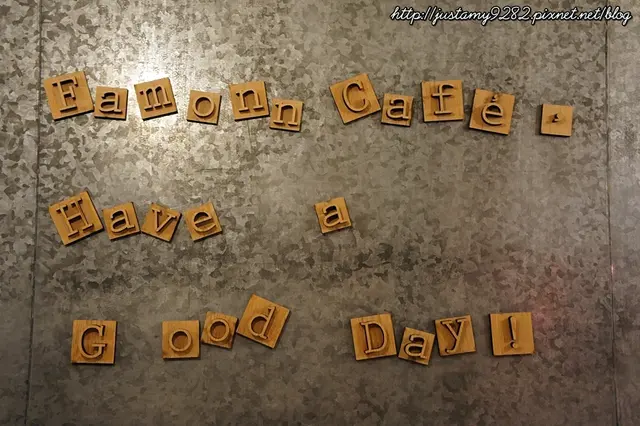 貼了 Famonn Cafe,Have a Good Day 字樣