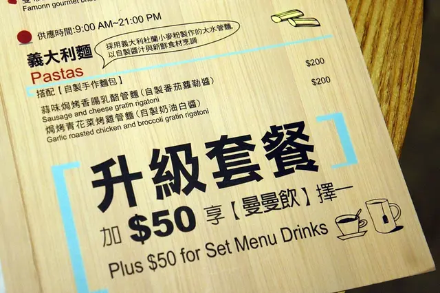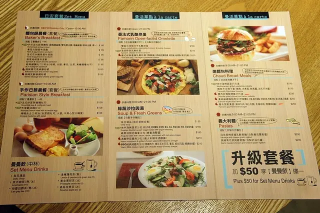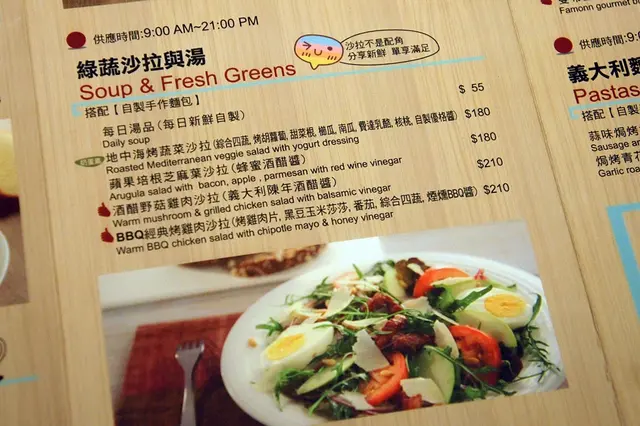 有曼法式乳酪烘蛋、綠蔬沙拉與湯、燒麵包料理及義大利麵