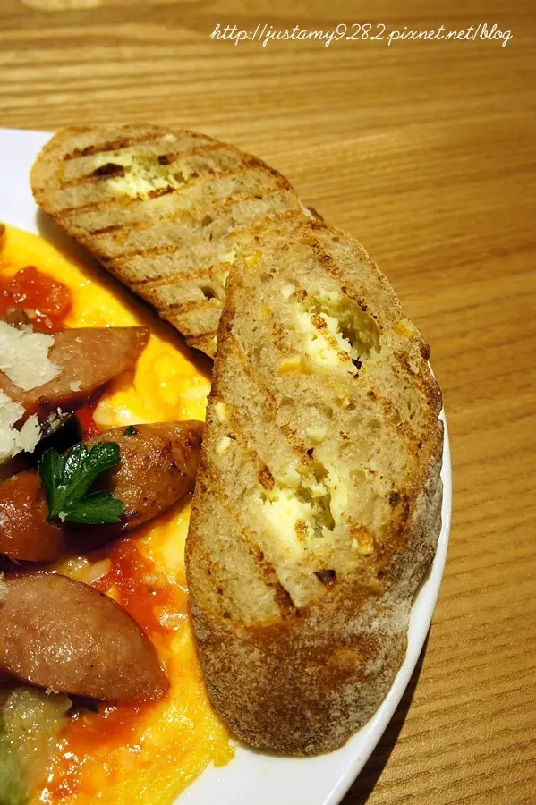 仔細一瞧~ 麵包內層事先裹上一層薄薄的奶油再丟進烤箱慢烤