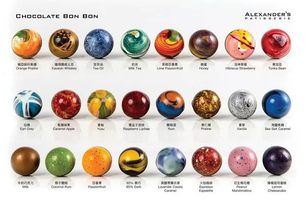 而現在口味已經來到24種啦!!!!可以參考亞歷山大法式甜點的官方FB巧克力介紹~